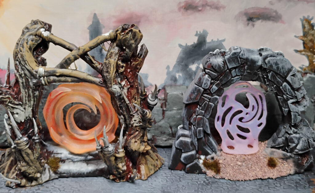 Before diving into the rules though, let me just quickly post up a little showcase of the NPCs I put together for this campaign. Had a lot of fun- had some already but painted up some new ones and these cool portals. The portal effect is printed on a very cool stratasys color printer. And always fun to paint up some old school demons!